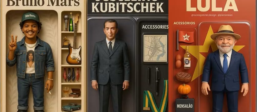 Usuários estão usando inteligência artificial para criar versões estilizadas de famosos no formato de Action Figures – aqueles bonecos detalhados inspirados em personagens de filmes, músicos e personalidades. O ator e apresentador Otaviano Costa entrou na trend e compartilhou no X (antigo Twitter) sua própria versão em boneco. Fãs também aderiram à brincadeira, recriando artistas como Milton Nascimento e Bruno Mars no mesmo estilo e viralizando nas redes sociais.